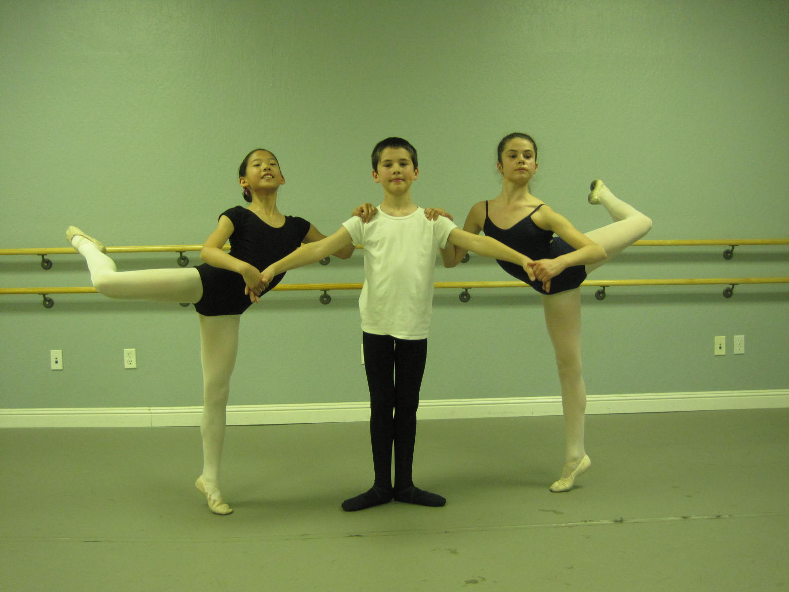 B.B.A. students, Erin, Daniel, & Teresa, posing after ballet class level 4-6.